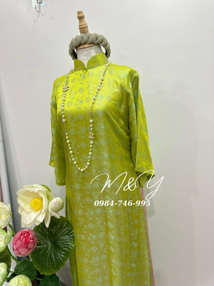 Áo dài tơ Tằm ✔️cổ đứng(khuy cài cổ) M - Xanh giá tốt
